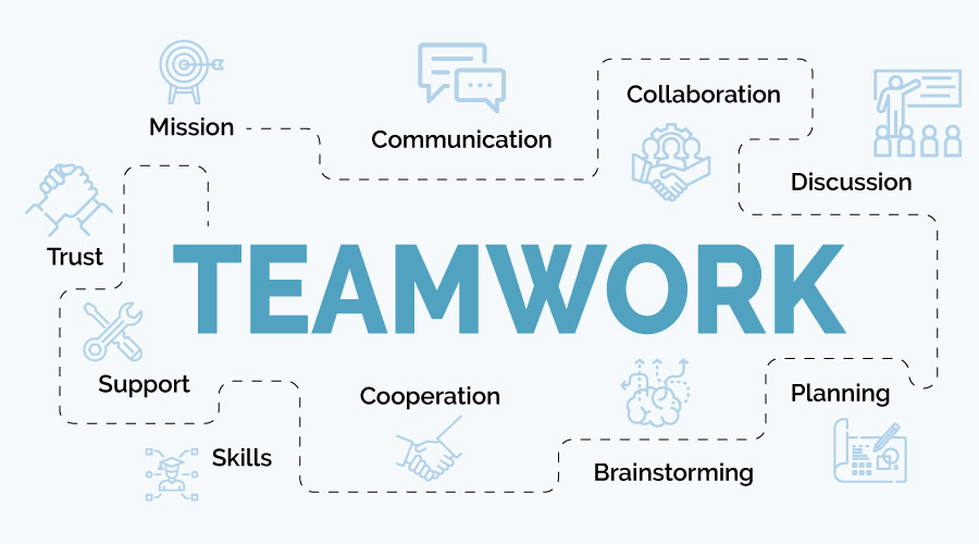 Rather to consider teamwork as something technical we can consider it as a group of different people working towards a common agenda most efficiently and effectively. It is just about sitting under the same roof and then working, it’s about sharing ideas and responsibility, finding the best possible way to achieve the objective together. When your target is achieved in the best possible manner as per the forethought you are successful in working as teamwork.